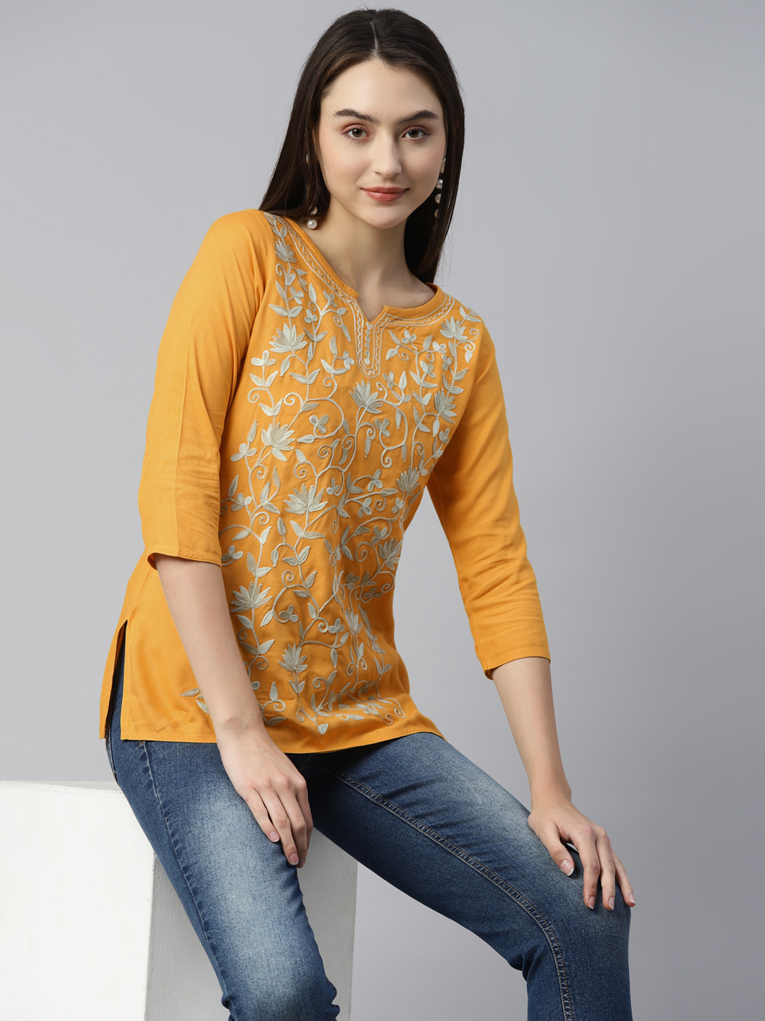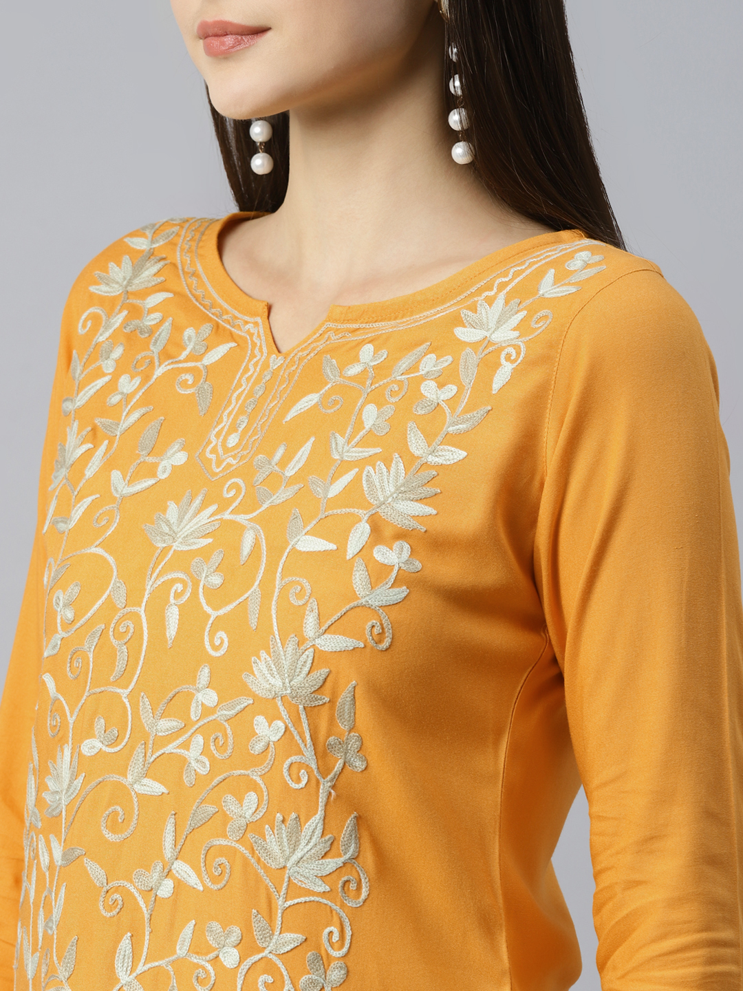 Jannat Kashmiri Mustard Yellow Kurti