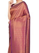 • The Magenta Kanchipuram Silk Zari Woven Saree is not just an outfit but an heirloomworthy piece that reflects Indias rich textile heritage. Its vibrant hue intricate craftsmanship and versatility make it a valuable addition to any wardrobe. Whether worn during festive rituals family celebrations or temple visits it is sure to leave a lasting impression. Pair it with traditional gold jewelry and a statement clutch to elevate its beauty further. This saree is a celebration of artistry tradition and elegance ensuring you look radiant on every occasion.