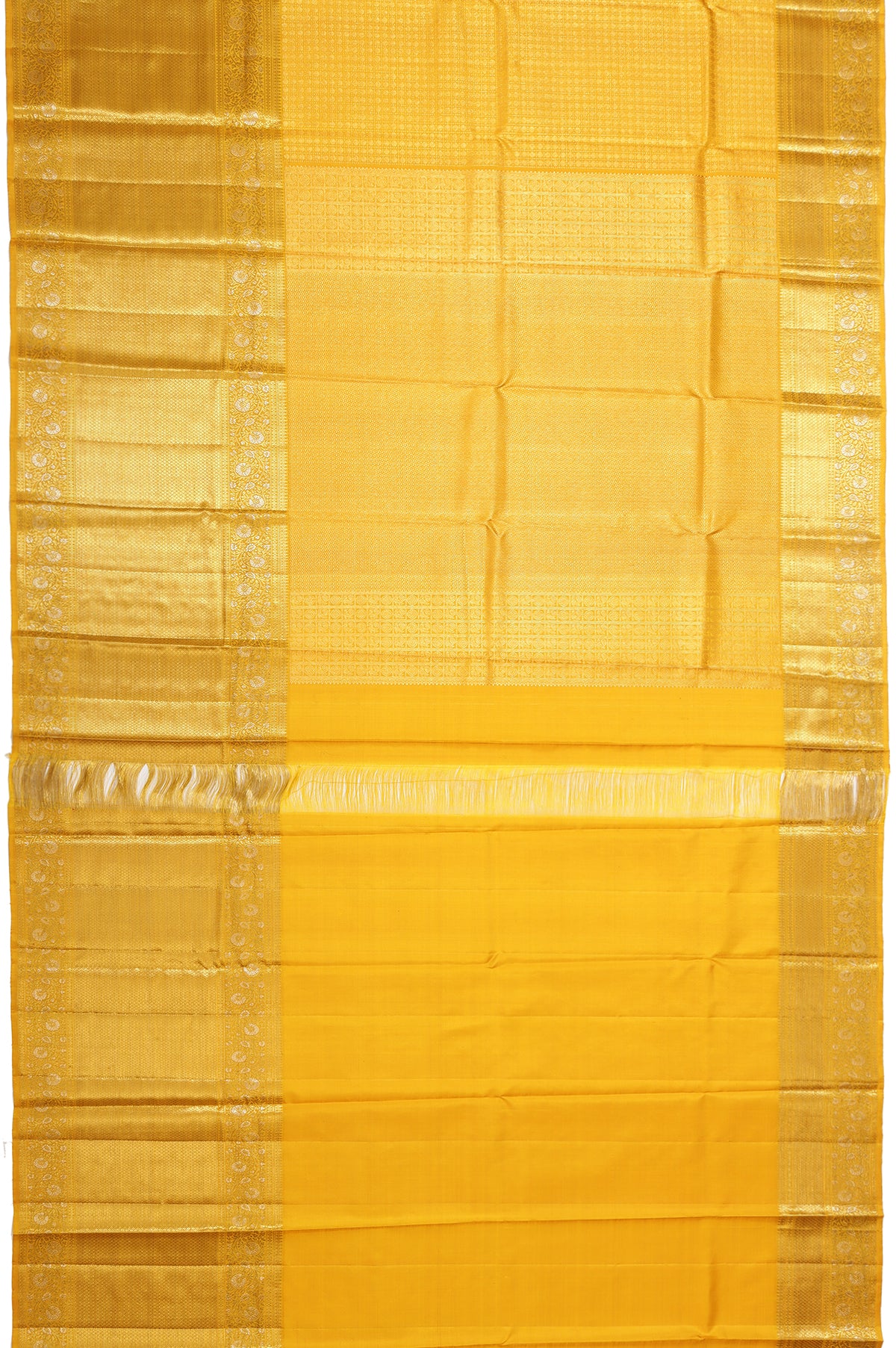 Mustard Kanchipuram Tissue Silk Saree with Large Gold Zari Border