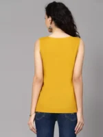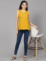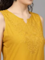 Mustard Self Embroidered Sleeveless Short Kurti