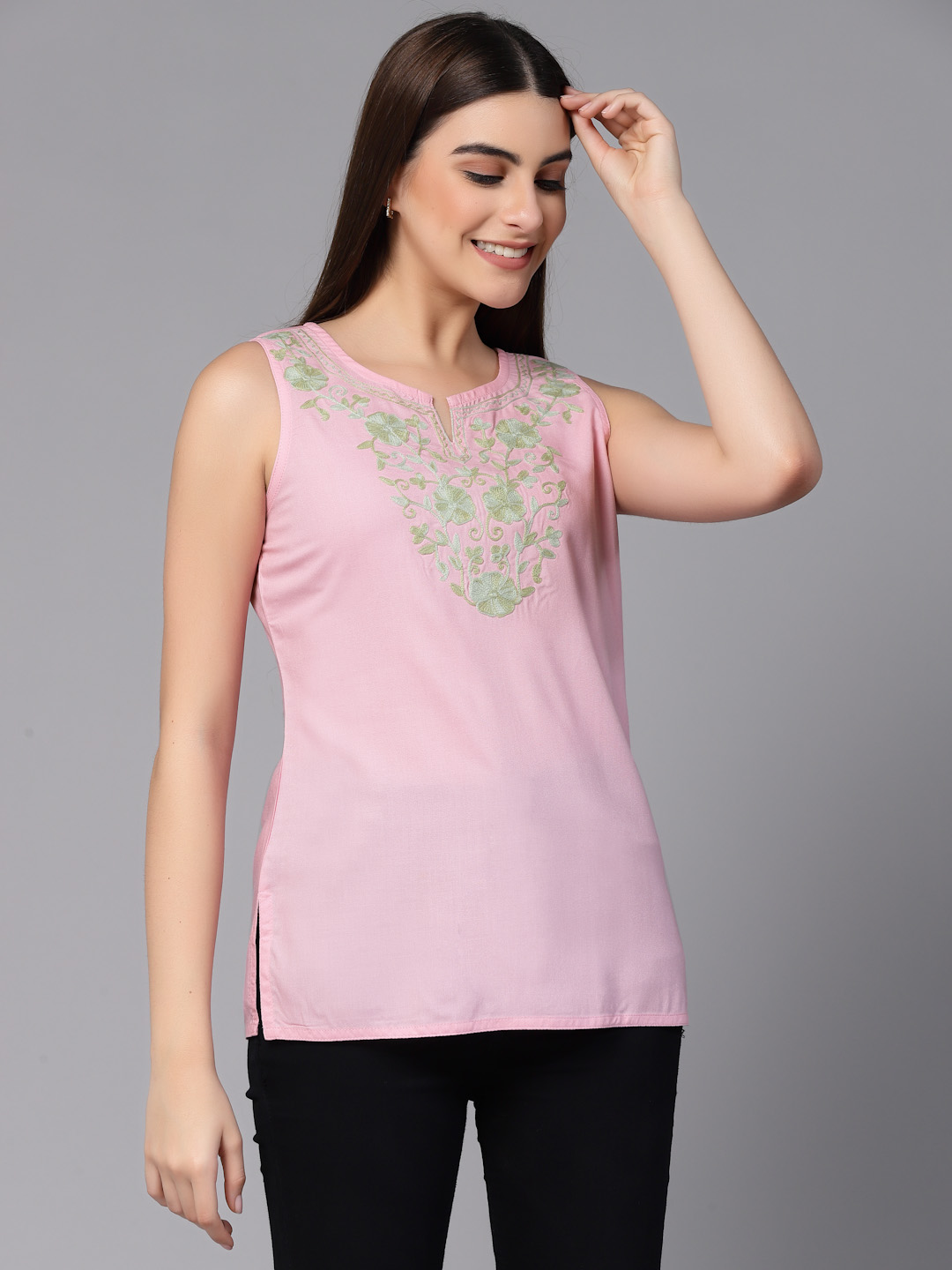Nadia Kashmiri Light Pink Sleeveless Kurti