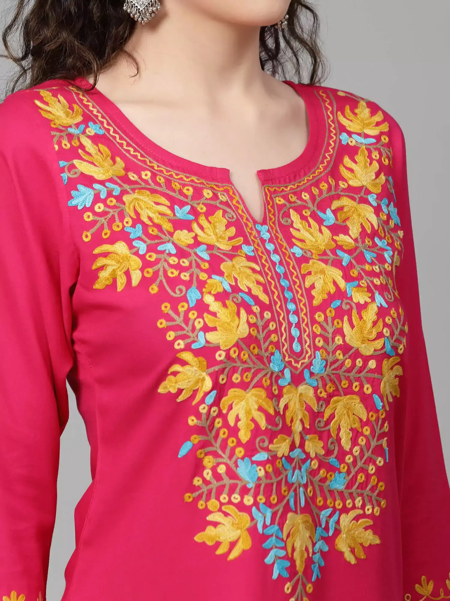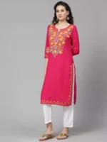 Look ethereal in this Aari work Kurti, freshly crafted in the lightness and comfy feel of cotton.