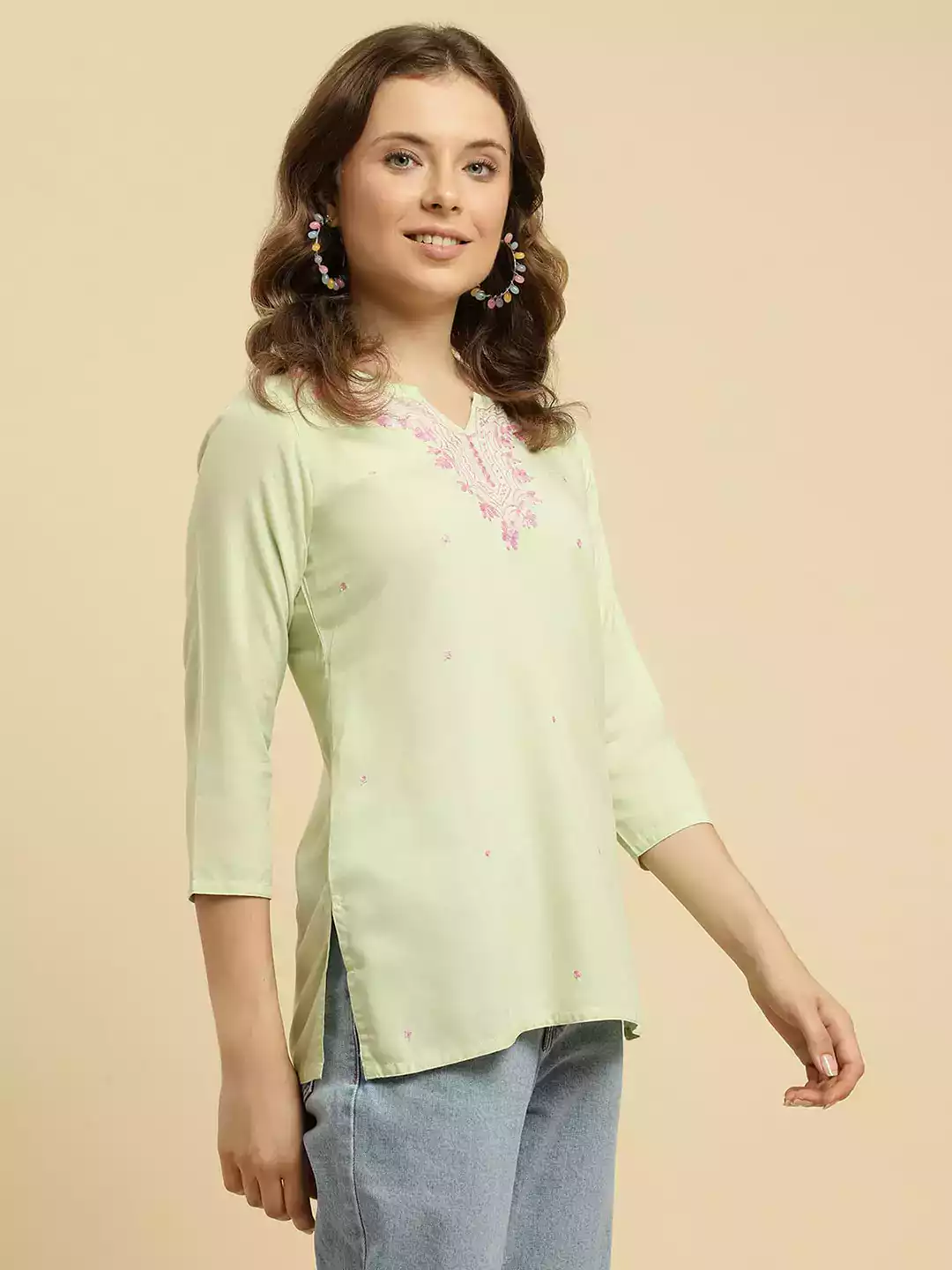 Home Short Kurtas Pista Green Pashmina Work Short Kurti