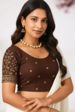 Whether you’re dressing up for a wedding, festival, or special event, this stretchable jacquard blouse brings designer flair without compromising on comfort.