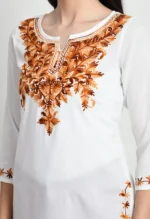 White Kashmiri Embroidered Short Kurti