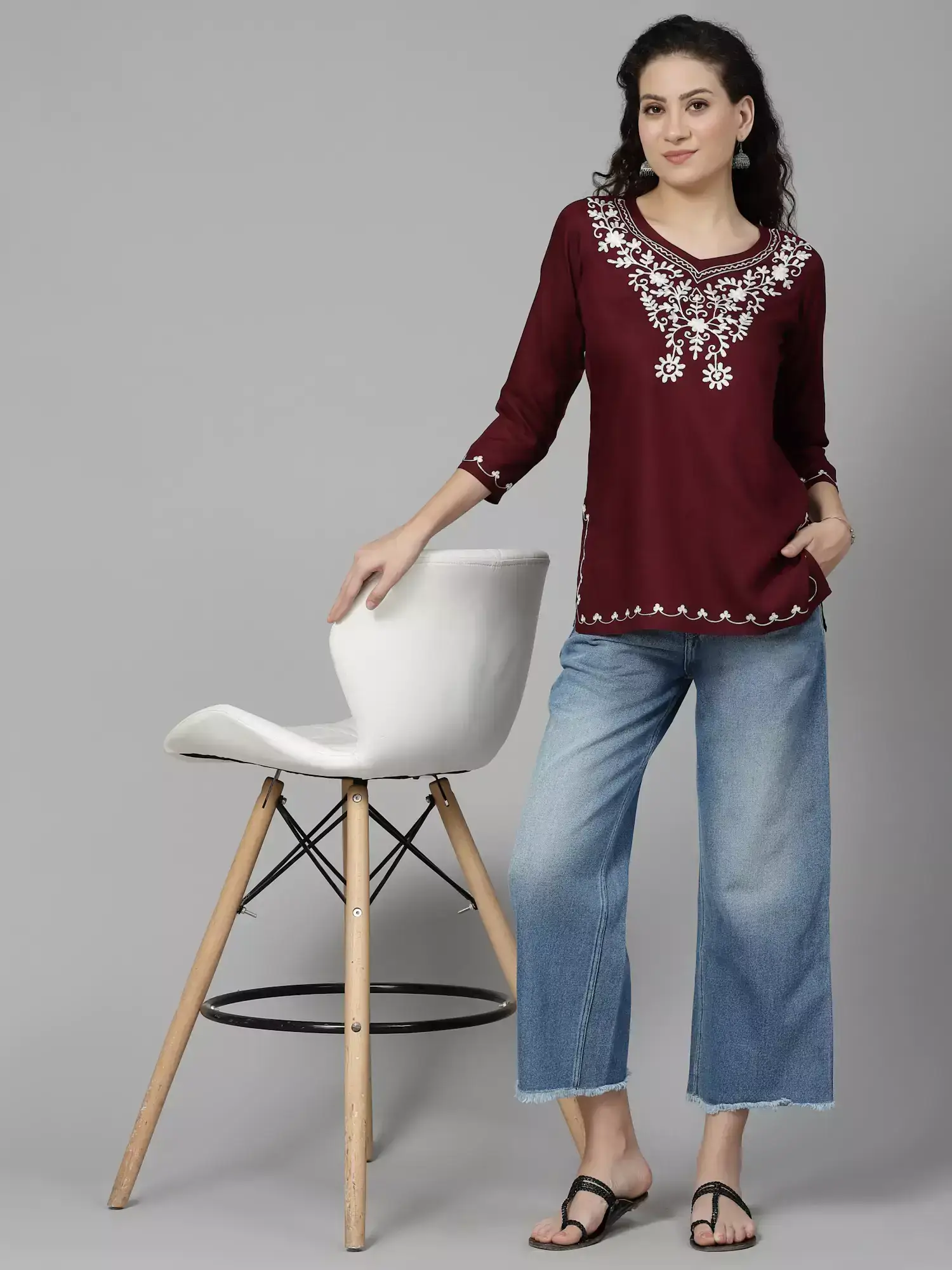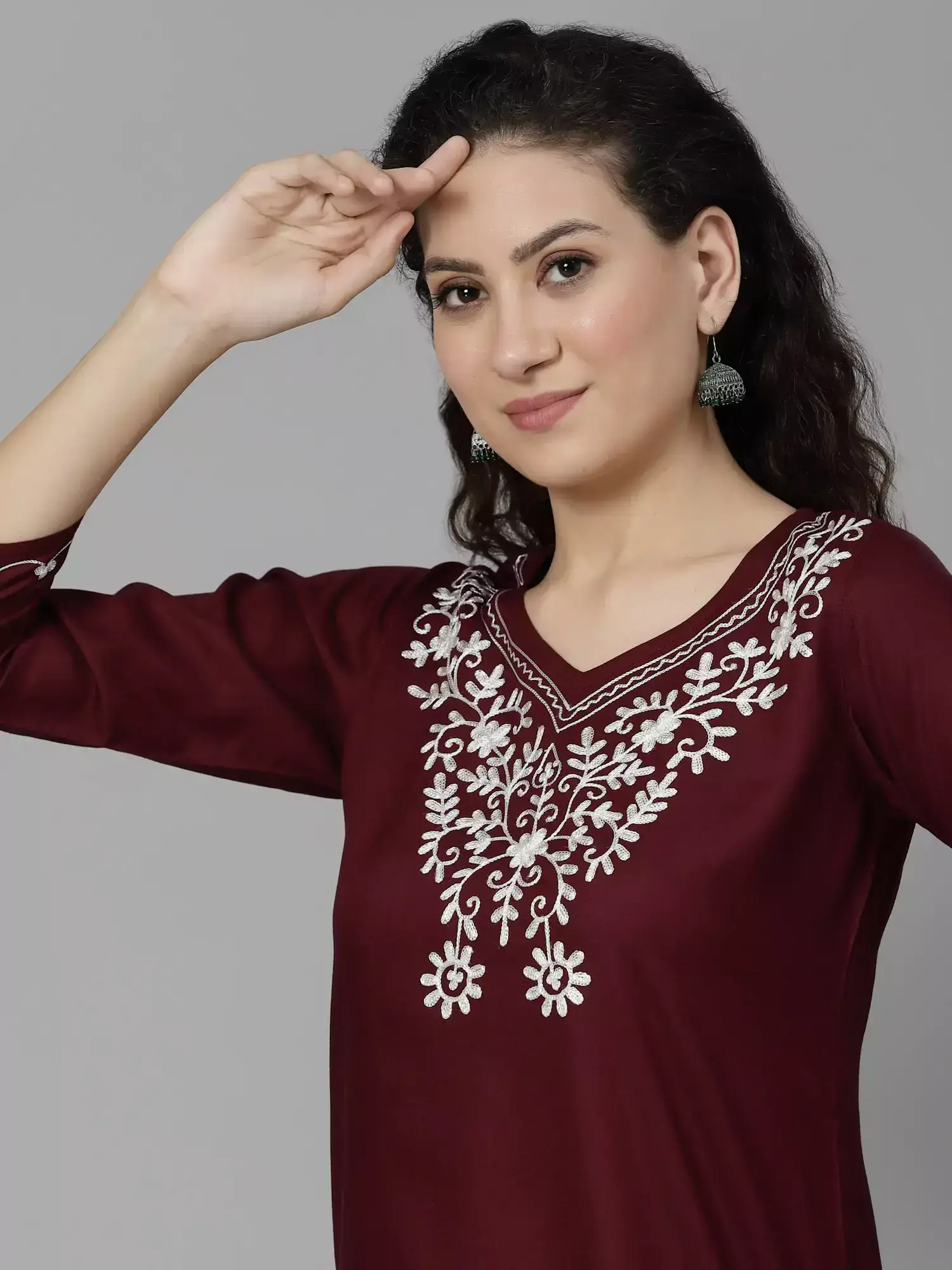 Maroon Kashmiri Silk Work Short Kurti